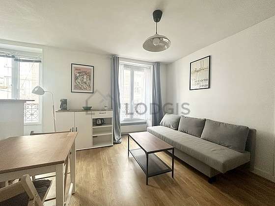 SalónEste apartamento está formado por un salón con parquet en el suelo y ventanas y una vista a la calle. Este salón tranquilo está amueblado y equipado para que su estancia sea agradable : mesa, mesita, cómoda, 1 silla(s)1 sofá cama.