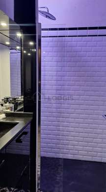Este apartamento tiene una sala de baño. Este baño tiene todo lo necesario para su bienestar diario : toallas, armario empotrado, ducha, secador de pelo, sink, mirror, bin, radiador seca-toallas, carpet, ventilator. El WC está separado de la sala del baño y ubicado en un espacio independiente.