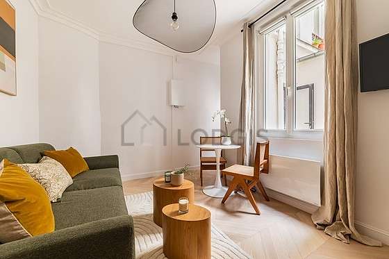 Este apartamento está formado por un salón con parquet en el suelo y ventanas doble acristalamiento. Este salón tranquilo está amueblado y equipado para que su estancia sea agradable : televisor, plancha, aspirador, sofá, mesita, 1 silla(s), pouffe1 sofá cama.
