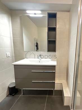 Este apartamento tiene una sala de baño. Este baño tiene todo lo necesario para su bienestar diario : ducha, secador de pelo, sink, radiador seca-toallas. El WC está separado de la sala del baño y ubicado en un espacio independiente.