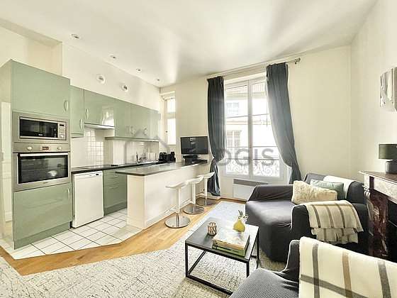 Este apartamento posee una cocinay todo el equipamiento necesario para su vida diaria : placas eléctricas, refrigerador, congelador, horno, micro ondas, congelador, campana extractora, aspirador, tostador, hervidor, cafetera, vajilla.