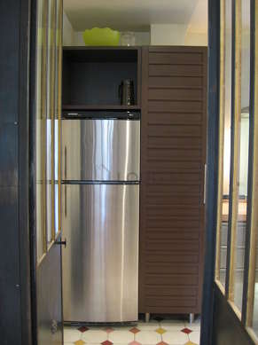 Este apartamento posee una magnífica cocina con azulejo en el sueloy todo el equipamiento necesario para su vida diaria : placas eléctricas, refrigerador, congelador, horno, micro ondas, tostador, cafetera, armario empotrado, vajilla.