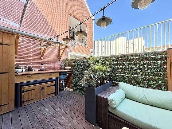 Terraza, la terraza deesta casa os encantará. Este espacio exterior equipado con sofá, mesa, barbacoa podrá aprovechar plenamente de su estancia en París, sobre todo los días soleados.