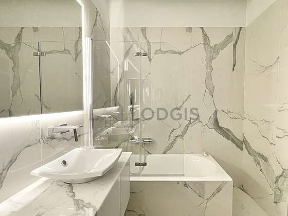Este apartamento tiene una sala de baño. Este baño tiene todo lo necesario para su bienestar diario : bañera, ducha, radiador seca-toallas. El WC está integrado en la sala del baño.