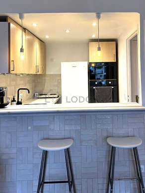 Este apartamento posee una cocinay todo el equipamiento indispensable para su vida diaria : placas eléctricas, congelador, horno, micro ondas, hervidor, cafetera, armario empotrado, cutlery.