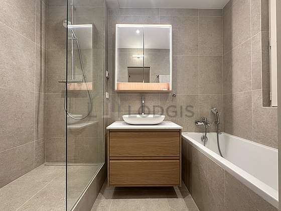 Este apartamento tiene una sala de baño agradable y clara. Este baño tiene todo lo necesario para su bienestar diario : bañera, ducha, sink. El WC está separado de la sala del baño y ubicado en un espacio independiente.