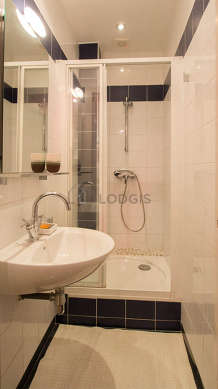 Este apartamento tiene una sala de baño. Este baño tiene todo lo necesario para su bienestar diario : ducha, sink. El WC está separado de la sala del baño y ubicado en un espacio independiente.