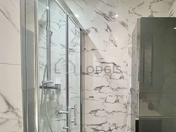 Este apartamento tiene una sala de baño. Este baño tiene todo lo necesario para su bienestar diario : ducha, radiador seca-toallas. El WC está separado de la sala del baño y ubicado en un espacio independiente.