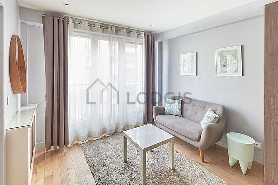 Este apartamento está formado por un salón con parquet en el suelo y ventanas y una vista a la calle. Este salón muy tanquilo está amueblado y equipado para que su estancia sea agradable : televisor, sofá, 1 sillones, mesita, biblioteca, estantería, mesita de noche, mirror1 cama.