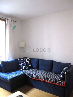 Este apartamento está formado por un salón con parquet en el suelo y ventanas doble acristalamiento y una vista a al patio. Este salón tranquilo está amueblado y equipado para que su estancia sea agradable : televisor, mesa, mesita, estantería, 4 silla(s)1 sofá cama.