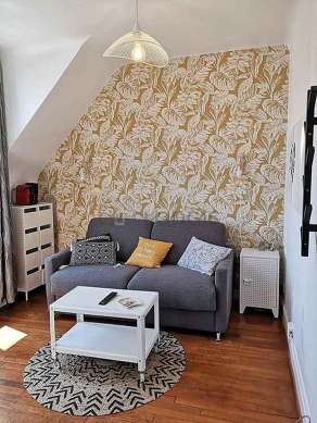 Este apartamento está formado por un salón con parquet en el suelo y ventanas doble acristalamiento. Este salón tranquilo está amueblado y equipado para que su estancia sea agradable : televisor, sábanas, edredones, mesa, mesita, ropero, estantería, 2 silla(s)1 sofá cama.