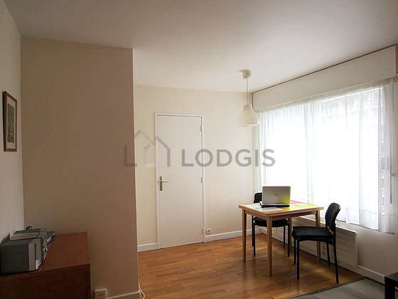 Este apartamento está formado por un salón con parquet en el suelo y ventanas doble acristalamiento y una vista a la calle. Este salón tranquilo está amueblado y equipado para que su estancia sea agradable : televisor, sábanas, edredones, mesa, mesa de estudio, ropero, estantería, cómoda, armario empotrado, 4 silla(s)1 cama.