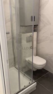 Este apartamento tiene una sala de baño agradable. Este baño tiene todo lo necesario para su bienestar diario : toallas, armario empotrado, ducha, radiador seca-toallas. El WC está separado de la sala del baño y ubicado en un espacio independiente.