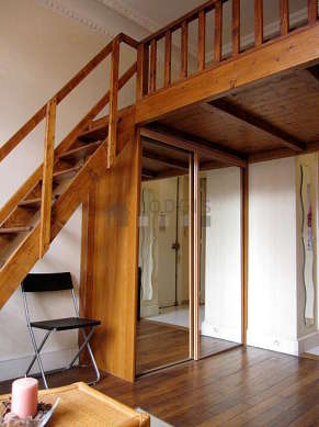Este apartamento está formado por un salón con parquet en el suelo y ventanas y una vista a la calle. Este salón tranquilo está amueblado y equipado para que su estancia sea agradable : televisor, sábanas, edredones, mesita, mesa de estudio, ropero, estantería, armario empotrado, 2 silla(s), taburete1 sofá cama, 1 cama en altura.