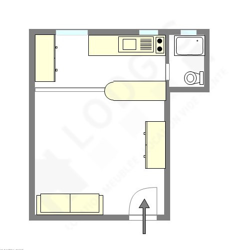 Este apartamento está formado por un salón con azulejo en el suelo y ventanas doble acristalamiento y una vista a al patio. Este salón tranquilo está amueblado y equipado para que su estancia sea agradable : televisor, sábanas, edredones, mesita, ropero, estantería, armario, cómoda1 sofá cama.