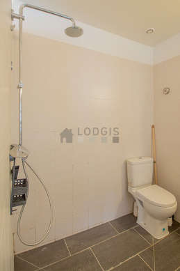 Este apartamento está formado por un salón con parquet en el suelo y ventanas y una vista a al patio. Este salón tranquilo está amueblado y equipado para que su estancia sea agradable : televisor, sábanas, edredones, 1 sillones, mesa, ropero, estantería, armario, 2 silla(s), mesita de noche1 cama.