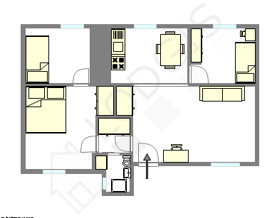 Este apartamento posee una bonito cocina con azulejo en el sueloy todo el equipamiento indispensable para su vida diaria : placas eléctricas, refrigerador, congelador, horno, micro ondas, tostador, hervidor, cafetera, mesa, armario empotrado, vajilla, 7 silla(s).