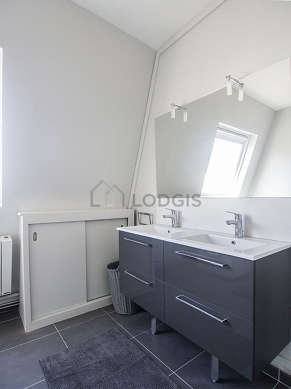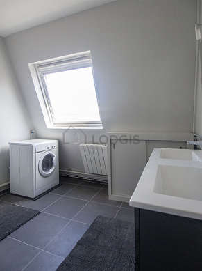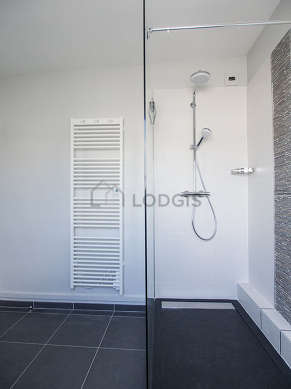 Este apartamento tiene una sala de baño muy clara with ventanas. Este baño tiene todo lo necesario para su bienestar diario : toallas, estantería, armario empotrado, bañera, ducha. El WC está separado de la sala del baño y ubicado en un espacio independiente.