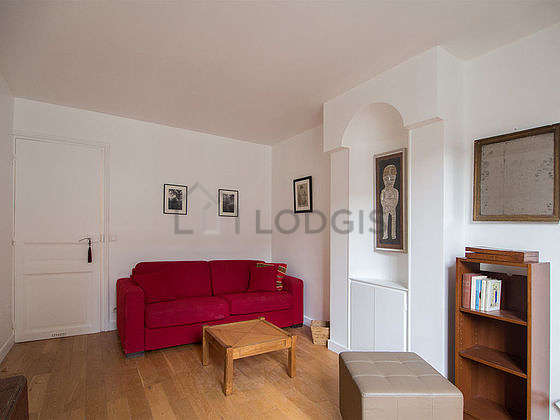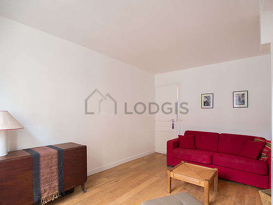 SalónEste apartamento está formado por un salón con parquet en el suelo y ventanas y una vista a al patio. Este salón tranquilo está amueblado y equipado para que su estancia sea agradable : televisor, mesa, mesita, estantería, 1 silla(s), taburete1 sofá cama.