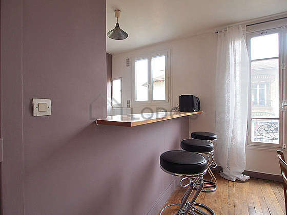 Este apartamento está formado por un salón con parquet en el suelo y ventanas y una vista a la calle. Este salón tranquilo está amueblado y equipado para que su estancia sea agradable : televisor, 1 sillones, mesa, mesita, aparador, armario empotrado, 4 silla(s)1 sofá cama.