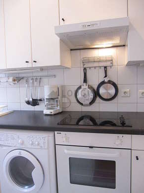 Este apartamento posee una bonito cocina con azulejo en el sueloy todo el equipamiento esencial para su vida diaria : placas eléctricas, refrigerador, congelador, horno, micro ondas, campana extractora, cafetera, armario empotrado, vajilla.