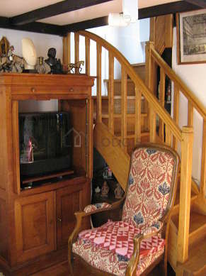 Este apartamento está formado por un salón con parquet en el suelo y ventanas doble acristalamiento y una vista a al patio. Este salón tranquilo está amueblado y equipado para que su estancia sea agradable : televisor, 3 sillones, mesa, biblioteca, armario empotrado, 4 silla(s).