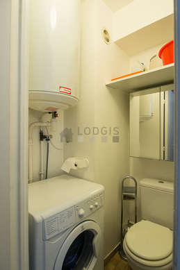 Este apartamento tiene una sala de baño agradable y clara with ventanas doble acristalamiento. Este baño tiene todo lo necesario para su bienestar diario : toallas, armario empotrado, ducha, secador de pelo, radiador seca-toallas. El WC está separado de la sala del baño y ubicado en un espacio independiente.