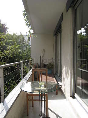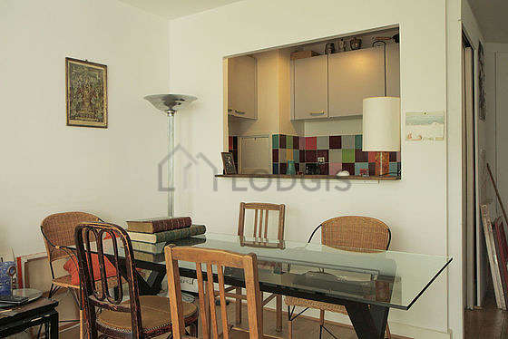 Este apartamento está formado por un salón con parquet en el suelo y ventanas, un balcon y una vista a jardín. Este salón muy tanquilo está amueblado y equipado para que su estancia sea agradable : sofá, mesa, ropero, armario empotrado, 7 silla(s).