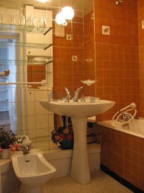 Este apartamento tiene una sala de baño magnífica. Este baño tiene todo lo necesario para su bienestar diario : toallas, estantería, armario empotrado, bañera. El WC está separado de la sala del baño y ubicado en un espacio independiente.