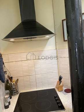 Este apartamento posee una bonito cocina con azulejo en el sueloy todo el equipamiento esencial para su vida diaria : placas eléctricas, refrigerador, congelador, micro ondas, horno micro-ondas, campana extractora, tostador, hervidor, estantería, armario empotrado, vajilla.