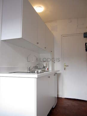 Este apartamento posee una bonito cocina contiguo al salón con terrazo en el sueloy todo el equipamiento indispensable para su vida diaria : placas eléctricas, refrigerador, micro ondas, congelador, hervidor, cafetera, armario empotrado, vajilla.