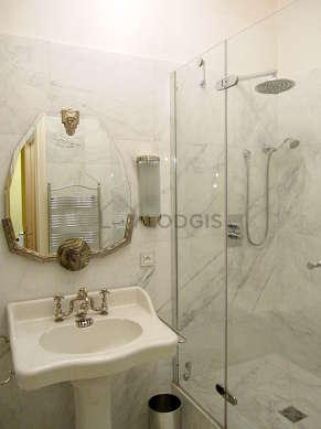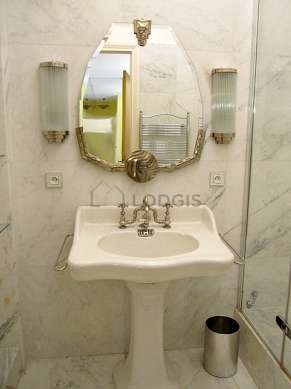 Este apartamento tiene una sala de baño agradable y clara. Este baño tiene todo lo necesario para su bienestar diario : toallas, armario empotrado, ducha, radiador seca-toallas. El WC está separado de la sala del baño y ubicado en un espacio independiente.