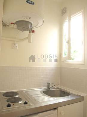 Este apartamento posee una bonito cocina con azulejo en el sueloy todo el equipamiento indispensable para su vida diaria : placas eléctricas, refrigerador, micro ondas, congelador, hervidor, armario empotrado, vajilla.