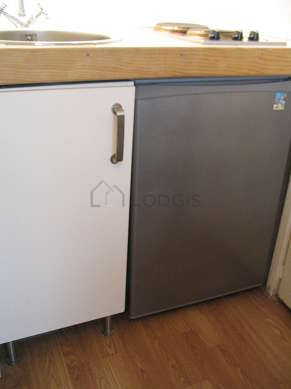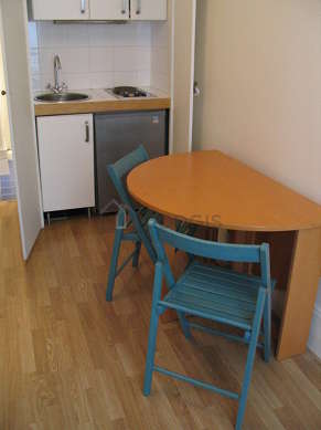 Este apartamento posee una cocina con parquet en el sueloy todo el equipamiento indispensable para su vida diaria : placas eléctricas, refrigerador, micro ondas, congelador, hervidor, cafetera, armario empotrado, vajilla.