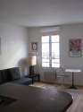 SalónEste apartamento está formado por un salón con parquet en el suelo y ventanas y una vista a al patio. Este salón tranquilo está amueblado y equipado para que su estancia sea agradable : televisor, sábanas, edredones, 1 sillones, mesa, ropero, armario empotrado, 2 silla(s), taburete1 sofá cama.