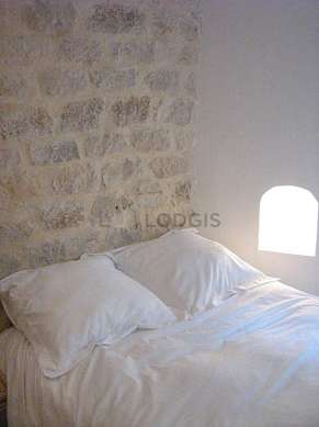 Con parquet en el suelo y ventanas y una vista a al patio, esta habitación acogedora ofrece el equipamiento necesario para descansar durante su estancia : sábanas, edredones, mesa de estudio, ropero, estantería, 1 silla(s), mesita de noche1 cama.