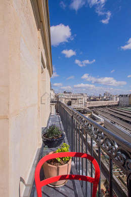 Este apartamento está formado por un salón con parquet en el suelo y ventanas doble acristalamiento, un balcon y una vista a la calle. Este salón está amueblado y equipado para que su estancia sea agradable : televisor, sofá, mesa, mesita, ropero, estantería, 4 silla(s).