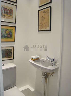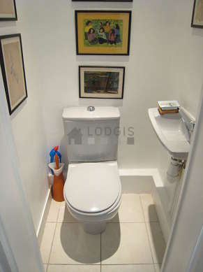Este apartamento tiene una sala de baño agradable y clara with ventanas. Este baño tiene todo lo necesario para su bienestar diario : toallas, estantería, armario empotrado, bañera. El WC está separado de la sala del baño y ubicado en un espacio independiente.