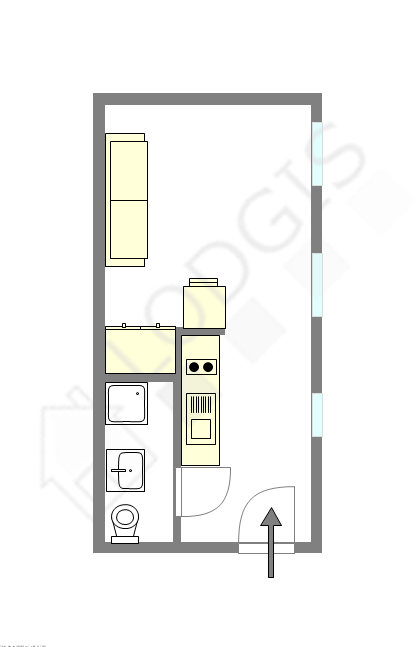 Este apartamento posee una cocina con azulejo en el sueloy todo el equipamiento necesario para su vida diaria : placas eléctricas, refrigerador, horno micro-ondas, tostador, hervidor, cafetera, mesa, armario empotrado, vajilla, 1 silla(s).