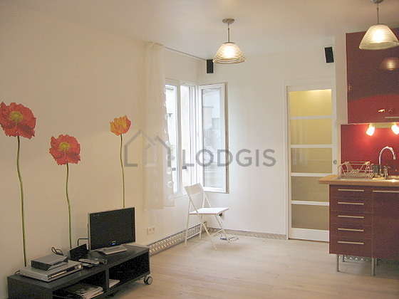 SalónEste apartamento está formado por un salón con parquet en el suelo y ventanas doble acristalamiento y una vista a al patio. Este salón muy tanquilo está amueblado y equipado para que su estancia sea agradable : televisor, sábanas, edredones, mesita, ropero, armario empotrado1 sofá cama.
