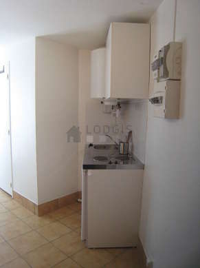 Este apartamento posee una cocina con azulejo en el sueloy todo el equipamiento indispensable para su vida diaria : placas eléctricas, refrigerador, congelador, cafetera, armario empotrado, vajilla.
