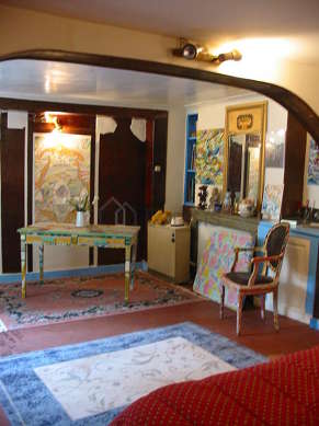 Este apartamento está formado por un salón con terrazo en el suelo y ventanas doble acristalamiento y una vista a al patio. Este salón muy tanquilo está amueblado y equipado para que su estancia sea agradable : televisor, sofá, mesa, aparador, armario empotrado, 6 silla(s), taburete.
