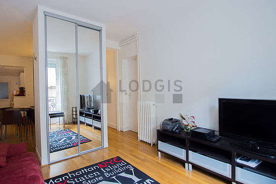 Este apartamento está formado por un salón con parquet en el suelo y ventanas doble acristalamiento y una vista a la calle. Este salón tranquilo está amueblado y equipado para que su estancia sea agradable : televisor, sábanas, edredones, mesa, mesita, mesa de estudio, ropero, armario empotrado, 5 silla(s)1 sofá cama.