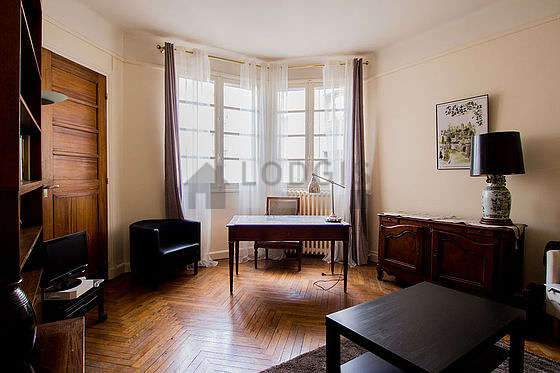 Este apartamento está formado por un salón con parquet en el suelo y ventanas y una vista a al patio. Este salón muy tanquilo está amueblado y equipado para que su estancia sea agradable : televisor, sábanas, edredones, 1 sillones, mesita, mesa de estudio, ropero, biblioteca, estantería, armario empotrado, 1 silla(s), mesita de noche1 sofá cama.