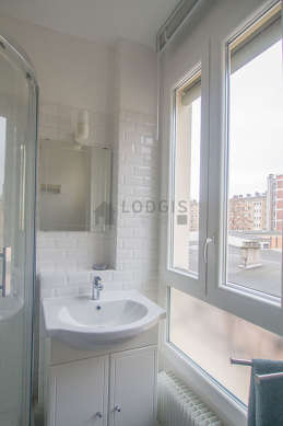 Este apartamento está formado por un salón con parquet en el suelo y ventanas doble acristalamiento y una vista a la calle. Este salón tranquilo está amueblado y equipado para que su estancia sea agradable : televisor, 1 sillones, mesita, estantería, 1 silla(s)1 sofá cama.