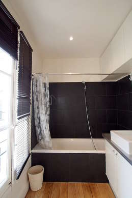 Este apartamento tiene una sala de baño agradable y clara with ventanas. Este baño tiene todo lo necesario para su bienestar diario : toallas, estantería, armario empotrado, bañera. El WC está separado de la sala del baño y ubicado en un espacio independiente.