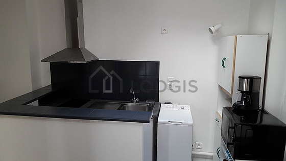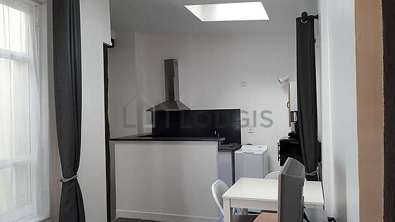 Este apartamento posee una cocina con azulejo en el sueloy todo el equipamiento indispensable para su vida diaria : placas eléctricas, refrigerador, horno, micro ondas, tostador, hervidor, cafetera, mesa, armario empotrado, vajilla, 3 silla(s).