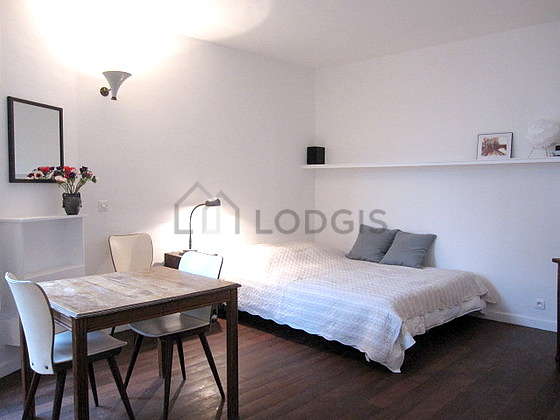 Este apartamento está formado por un salón con parquet en el suelo y ventanas doble acristalamiento y una vista a al patio. Este salón muy tanquilo está amueblado y equipado para que su estancia sea agradable : televisor, sábanas, edredones, mesa, mesa de estudio, ropero, estantería, armario, 4 silla(s), mesita de noche2 cama.