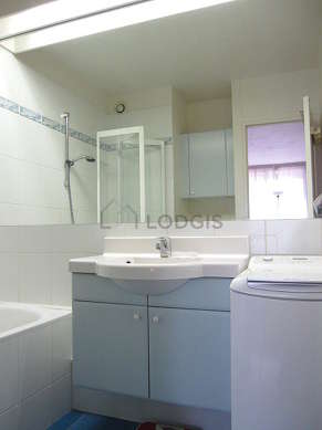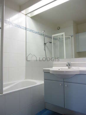 Este apartamento tiene una sala de baño agradable. Este baño tiene todo lo necesario para su bienestar diario : estantería, armario empotrado, bañera. El WC está separado de la sala del baño y ubicado en un espacio independiente.