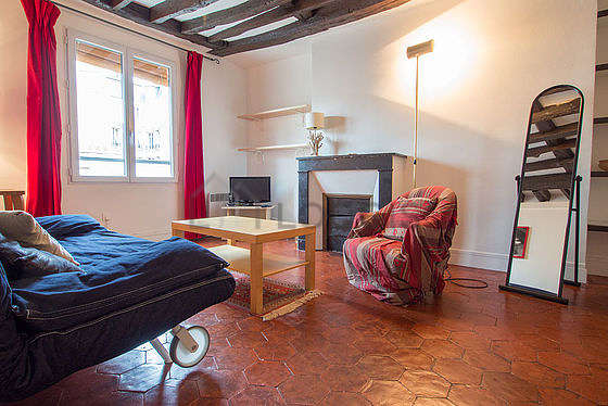 Este apartamento está formado por un salón con terrazo en el suelo y ventanas doble acristalamiento y una vista a al patio. Este salón muy tanquilo está amueblado y equipado para que su estancia sea agradable : televisor, sábanas, edredones, 1 sillones, mesa, mesita, estantería, armario, chimenea, 3 silla(s)1 sofá cama.